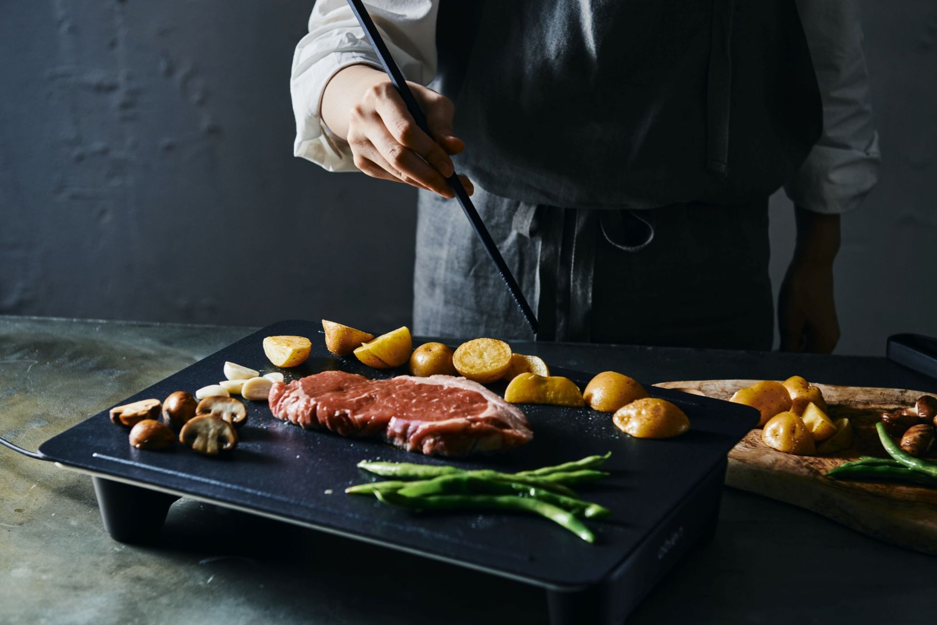 Kombinace tepelného zdroje a grilovací desky je navržena tak, aby po položení chladnějšího pokrmu rychle reagovala a vrátila teplotu zpět na nastavenou hodnotu, čímž předchází nerovnoměrnému propečení a poškození grilovací desky. Zrcadlový povrch ve spodní části pomáhá s rovnoměrným rozložením tepla.