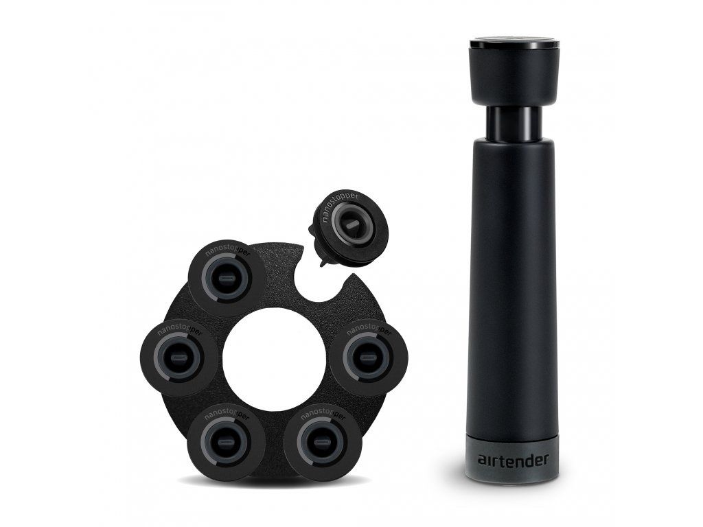 Navíc disponuje nanozátkami, které jsou dokonalou vakuovou zátkou. Můžete je použít na korkové i šroubovací uzávěry lahví a udržíte tak víno čerstvé a chutné až 5krát déle. Nanozátka se dokonce vejde pod šroubovací uzávěr a zajistí tak 100% nepropustné skladování i vleže.