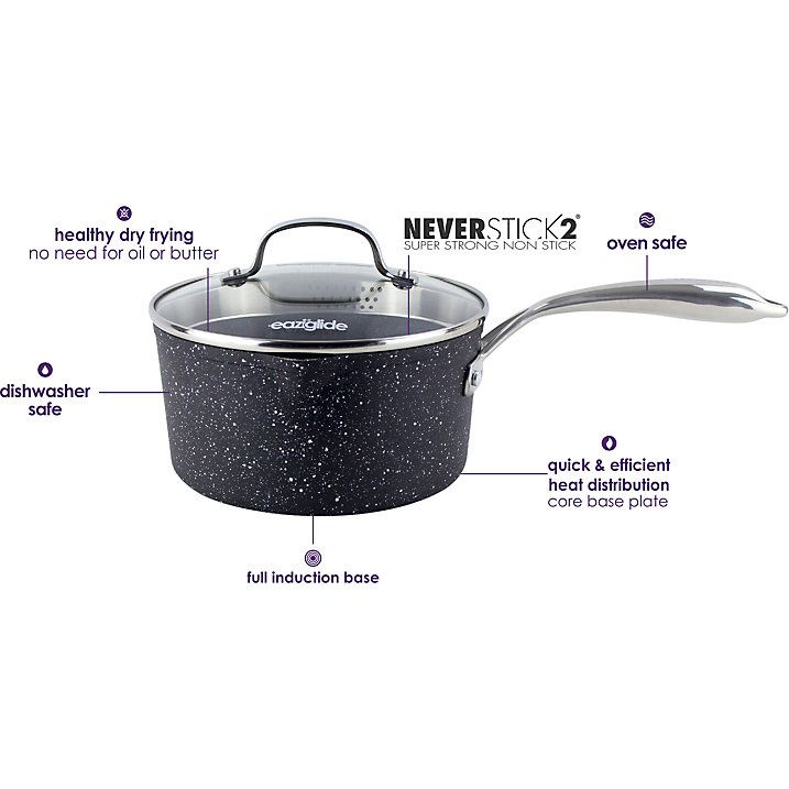 Nádobí značky Eaziglide Neverstick2 představuje nejnovější technologie a revoluční inovace na poli nepřilnavého nádobí. Eaziglide Neverstick2 vyrobený z tvrzeného hliníku je speciálně navržen tak, aby vám usnadnil život. Exkluzivní povrch Neverstick2 vydrží mnohem déle než ostatní povrchy, využívá 7x silnější technologii a díky tomu můžete vařit zdravě bez oleje nebo ostatních tuků.