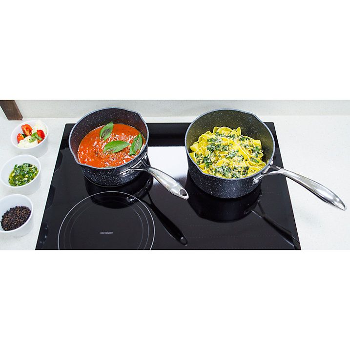 - tvrzené hliníkové tělo s pevnou základnou z nerezové oceli pro rychlé a rovnoměrné rozložení tepla