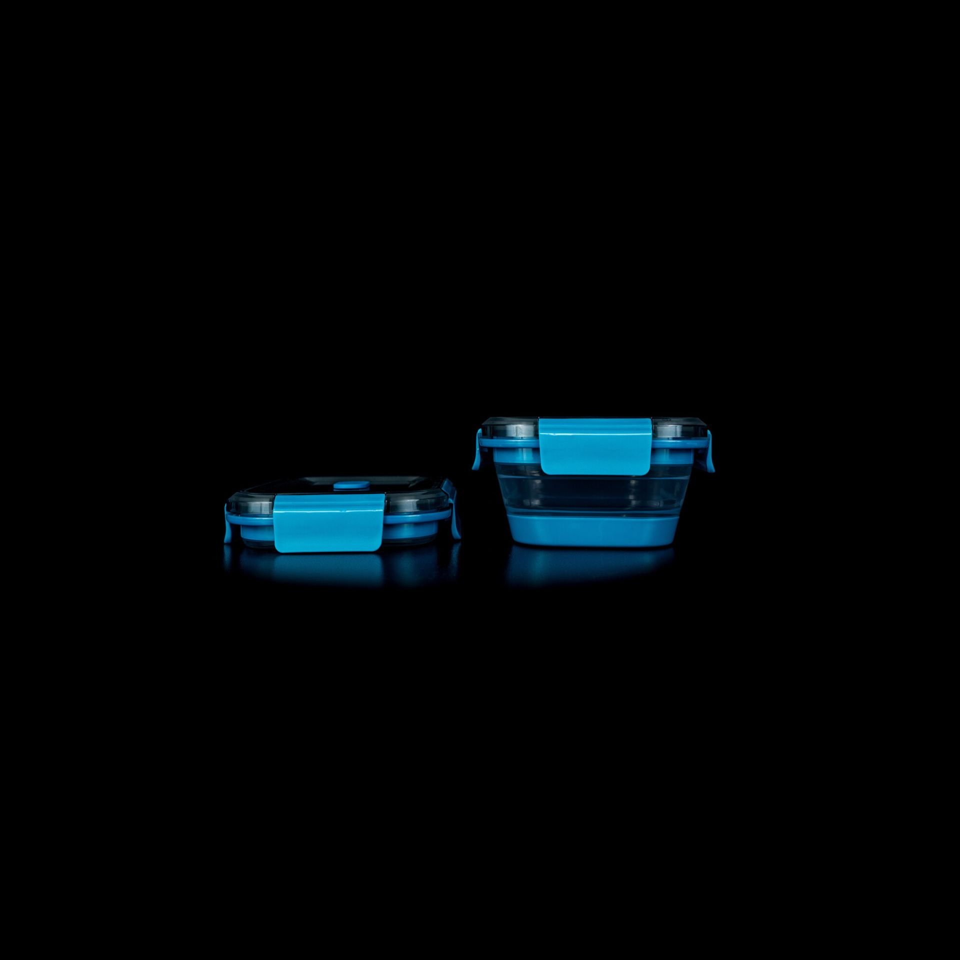 Dózy jsou flexibilní a jejich skládací konstrukce umožňuje snadné uložení do jakékoliv lednice nebo kuchyňské skříňky. Pevná plastová základna zajišťuje stabilitu, zatímco čtyři klipy umožňují vzduchotěsné uzavření, což je činí 100% nepropustnými. Tyto boxy jsou ideální i pro přenášení potravin, takže je můžete vzít s sebou kamkoliv!