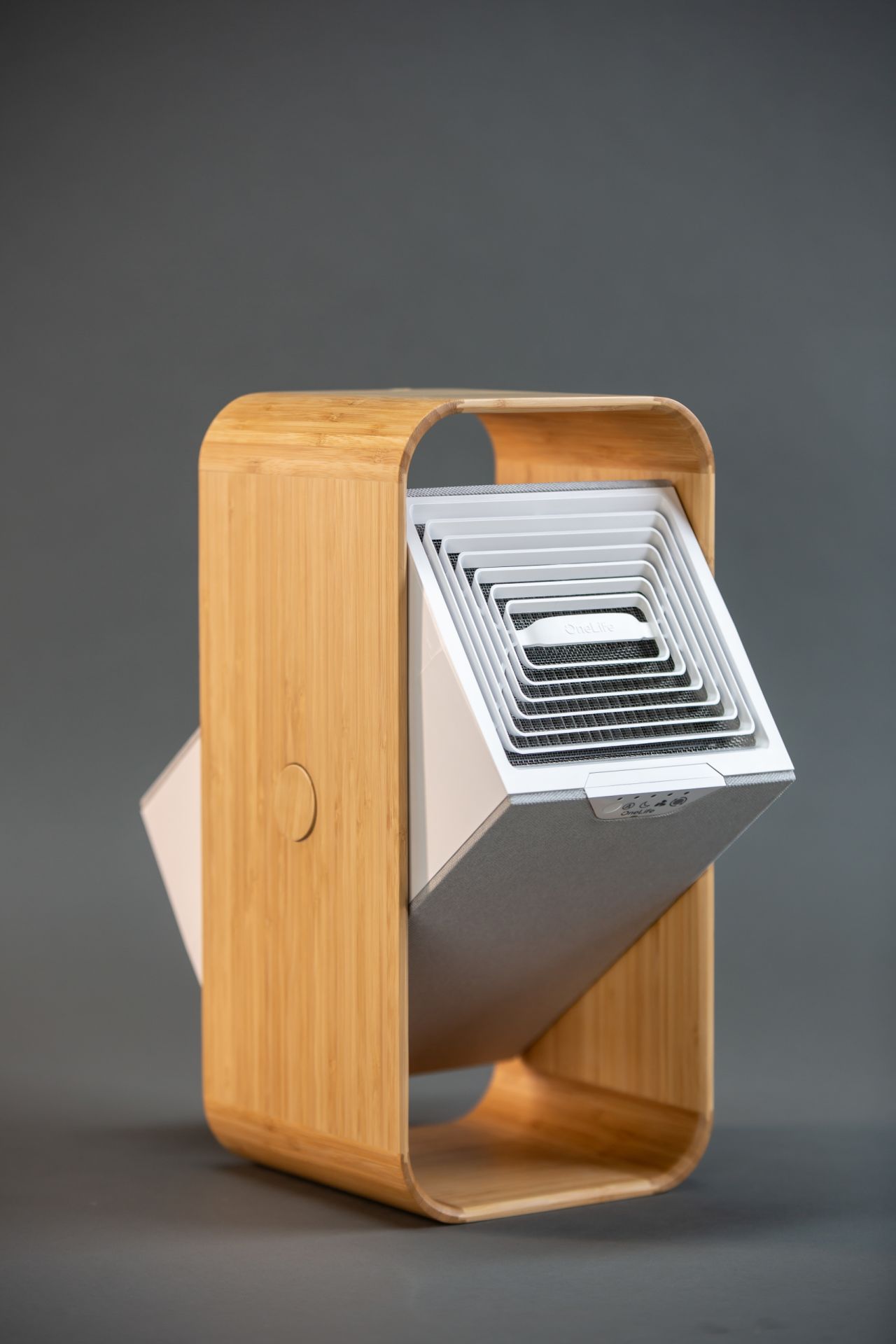 Konstrukce této unikátní čističky vzduchu kombinuje maximální účinnost s minimálním dopadem na životní prostředí. Přenosná čistička vzduchu je vyrobena z rychle rostoucího bambusu, který je pevnější než ocel, je super flexibilní, lehký a pěstovaný ekologicky.