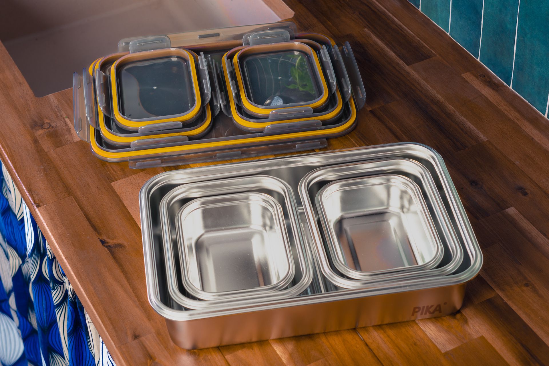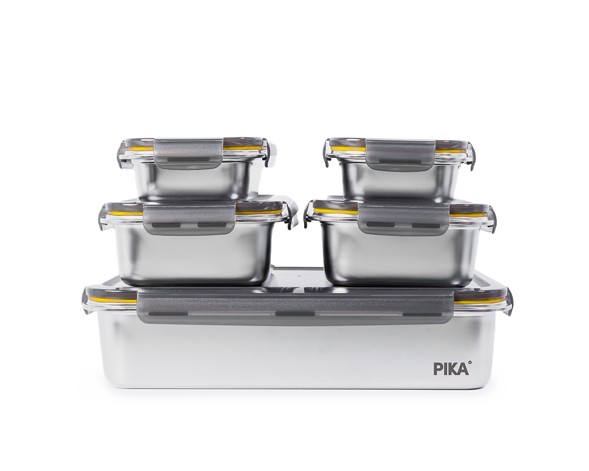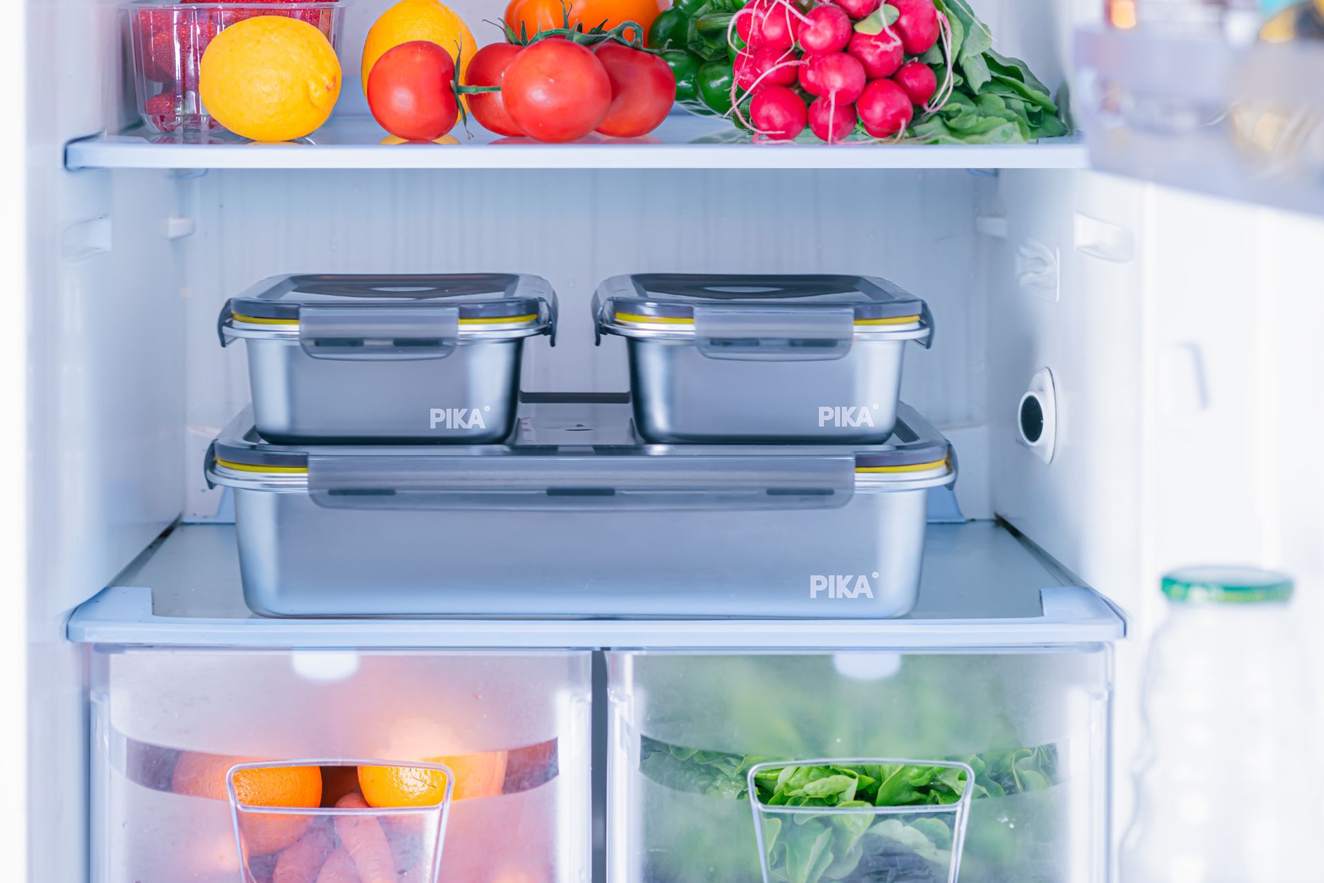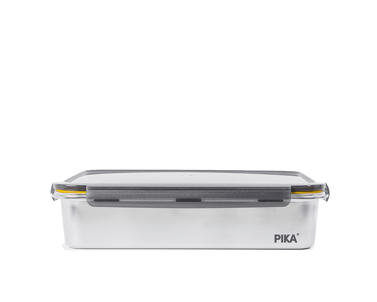 Objevte úložné boxy od PIKA: nerezová dóza na potraviny. Tento box je lehký, odolný, praktický a zcela vzduchotěsný. Můžete jej použít v klasické troubě, mikrovlnné troubě i v mrazáku. Ideální pro každodenní použití, od přípravy pokrmů až po konzumaci a skladování.