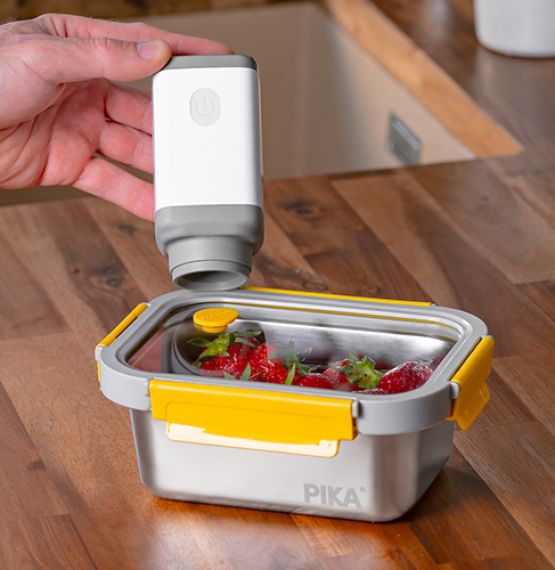 Elektrická vakuová pumpa PIKA okamžitě vytváří v nádobách vzduchový podtlak, což efektivně eliminuje kyslík odpovědný za znehodnocení potravin. Díky tomuto vakuu zůstávají suroviny čerstvé, jejich textura nedotčená a zachovány jsou i všechny nutriční hodnoty. Čerstvé potraviny tak můžete užívat až třikrát déle.