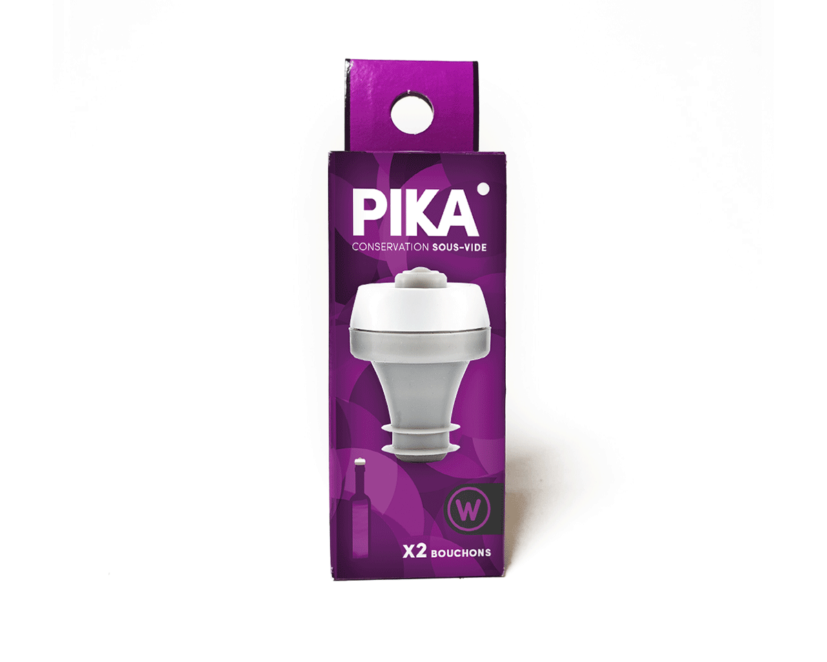 Vakuová silikonová zátka na lahve je zásadní součástí vinoték po celé Francii. Její použití je jednoduché: zátka se vloží do hrdla již otevřené lahve vína a pomocí elektrické vakuovací pumpy nebo ruční vakuové pumpy PIKA (dostupné ve startovací sadě) se rychle odsaje vzduch z lahve.