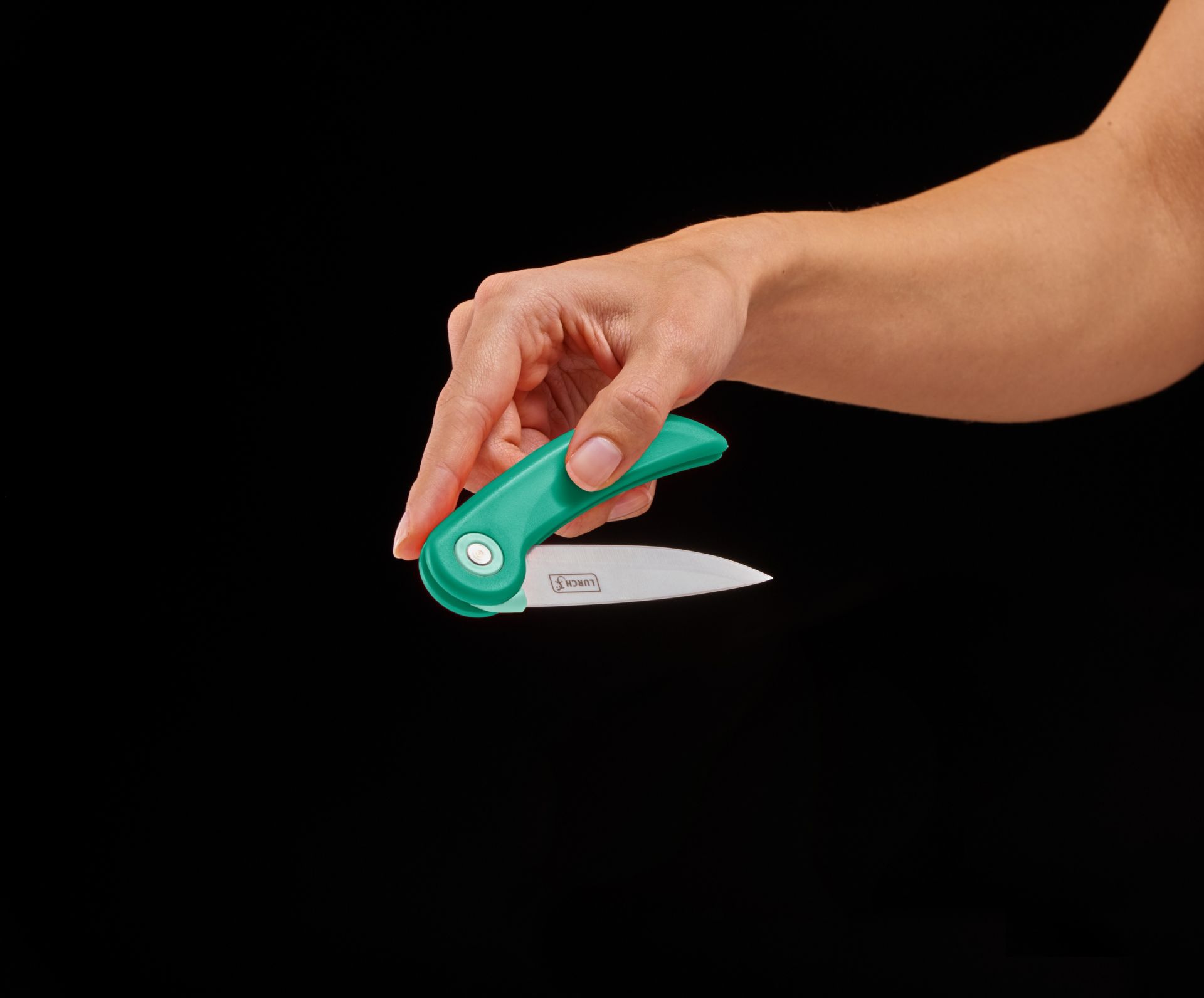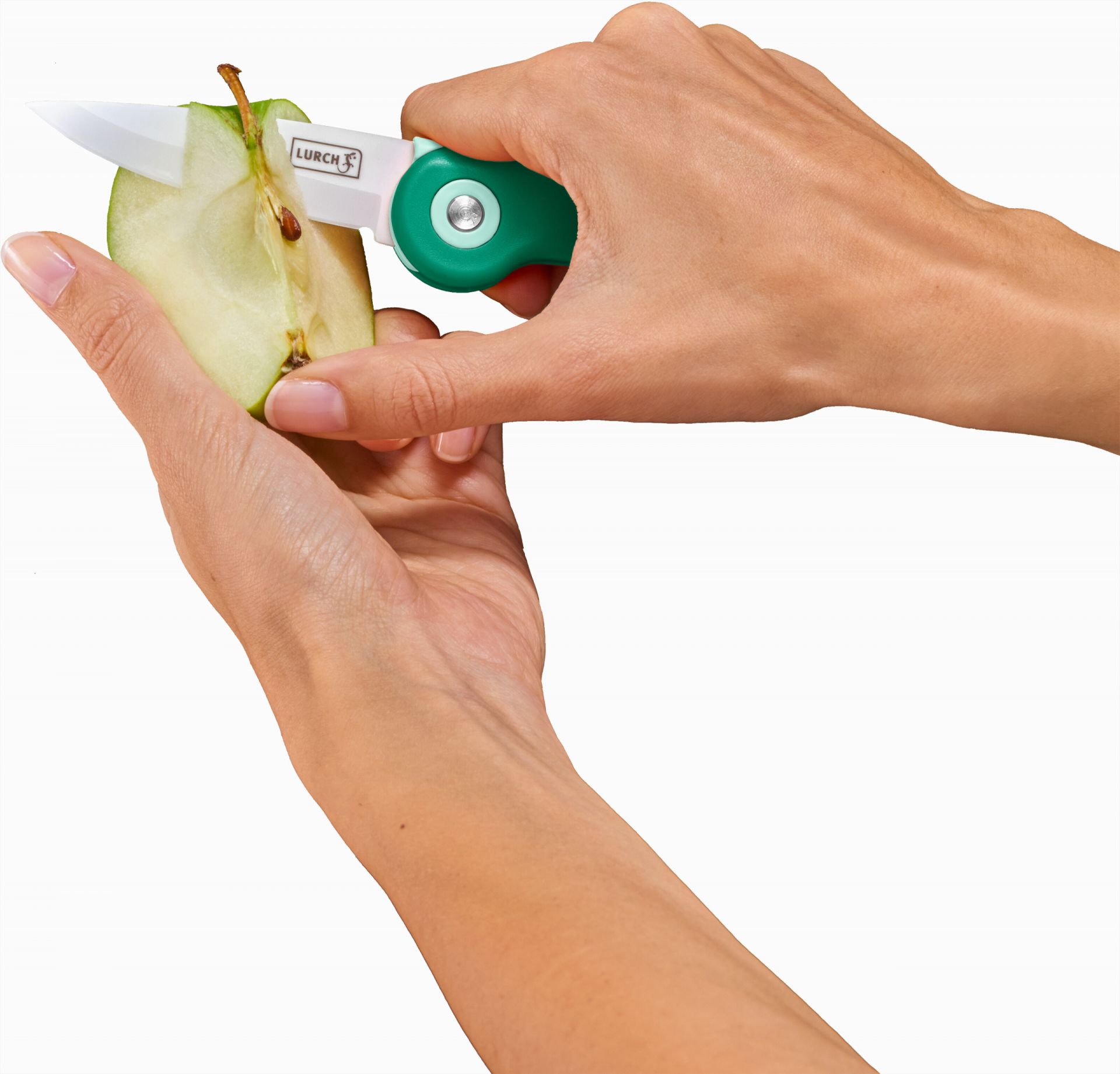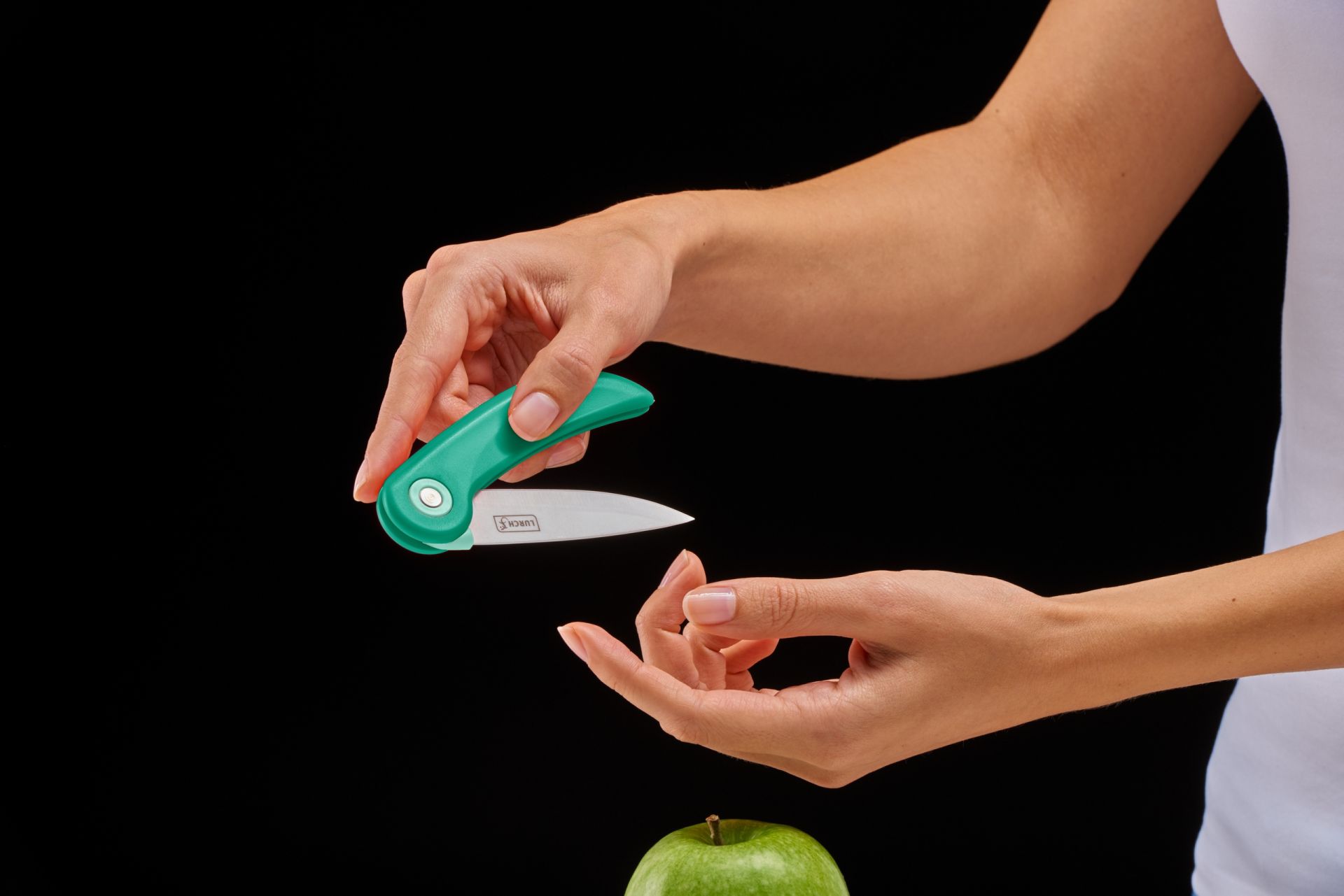 Keramická čepel je tepelně odolná, hypoalergenní, nerezavějící a také bez chutě a zápachu. Nůž se díky své konstrukci rychle a snadno čistí.