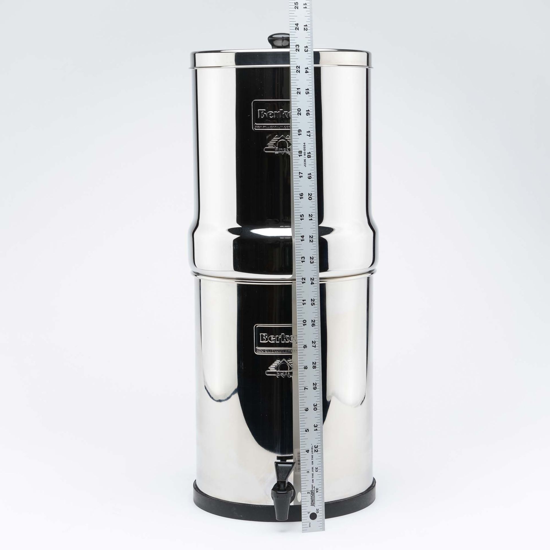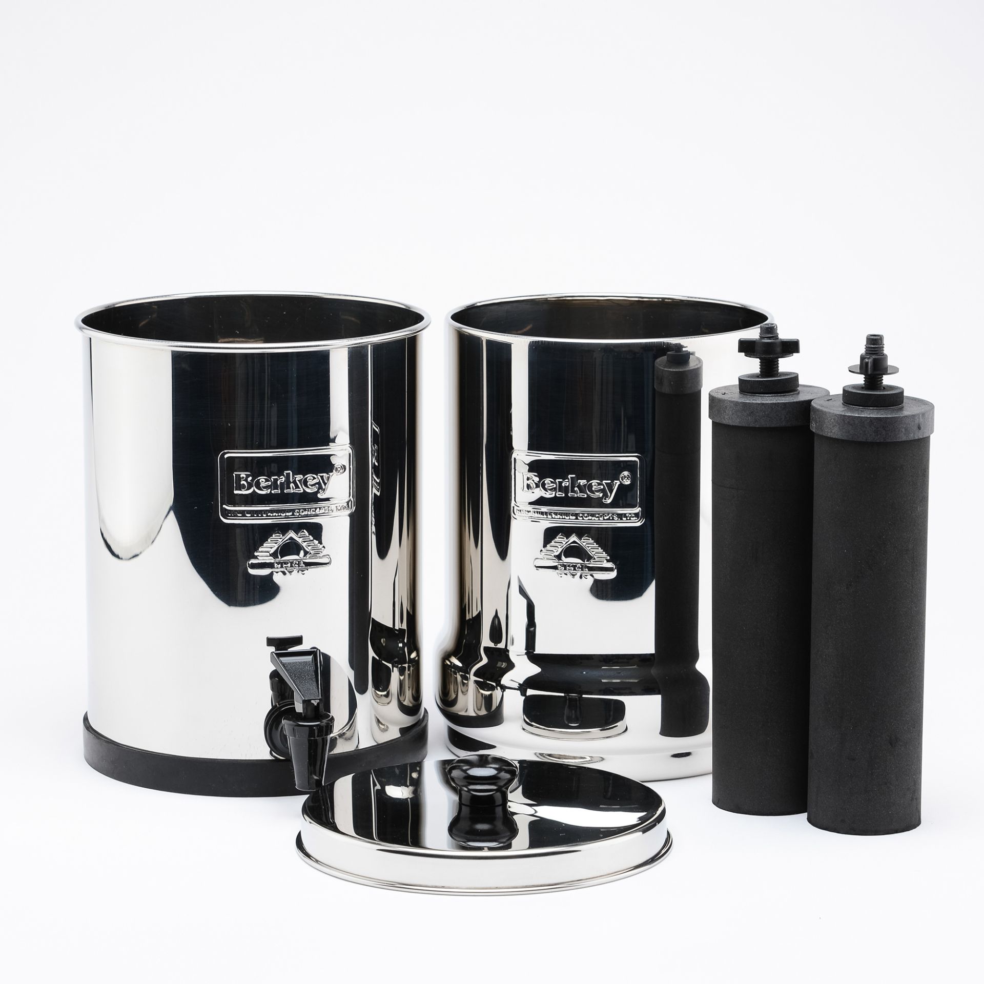 Ocel je odolná proti korozi, vodě, vodní páře a vlhkosti vzduchu a odolává povětrnostním vlivům.) a dodávají se se dvěma až čtyřmi filtračními vložkami Black Berkey®, které využívají nejnovějších technologických postupů pro čištění vody. Objem vody v tomto systému je 12,3 litrů, výška komory je 58 cm a průměr 24 cm. Horní komora je při dopravě umístěna uvnitř dolní komory.