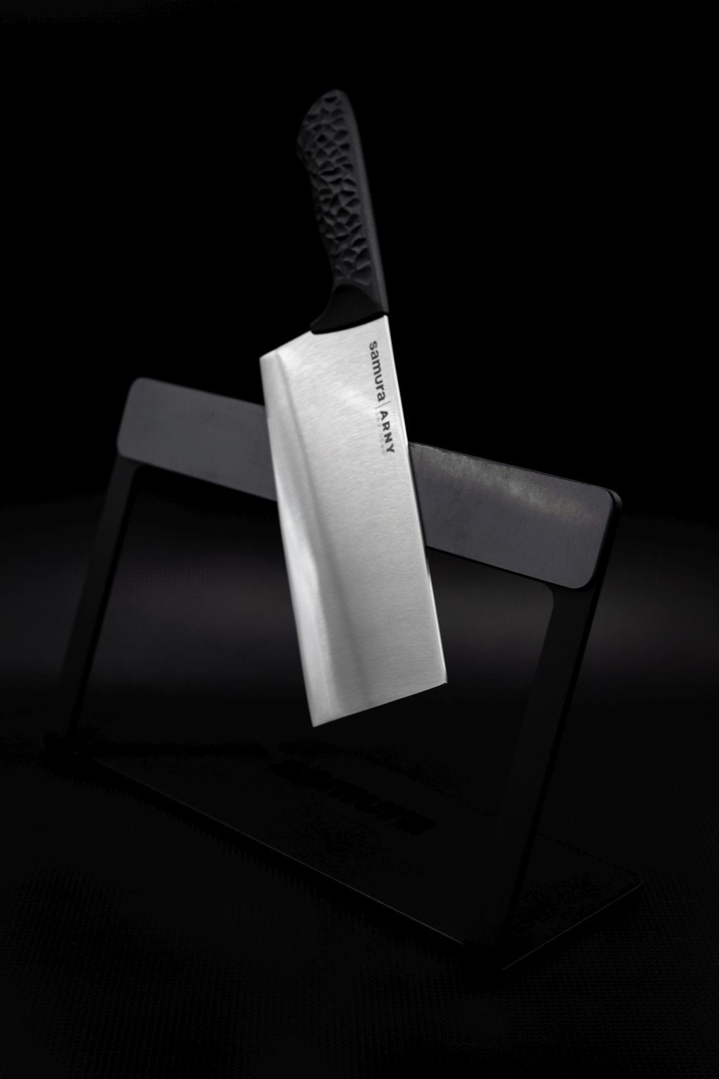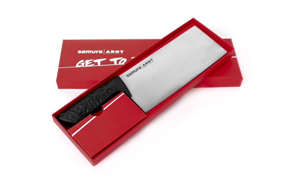 Prvním ze dvou modelů řady Arny spojujících nůž a sekáček je šéfkuchařský nůž asijského typu Samura - Arny Kuchařský nůž - sekáček 21 cm. Jeho ostří a vlastnosti jdou dál, než jste kdy u profesionálních nožů zaznamenali. Klíčovým prvkem je obdélníkové dlouhé ostří vyrobené tak, aby zvládlo náročnější úkoly než běžné šéfkuchařské nože.