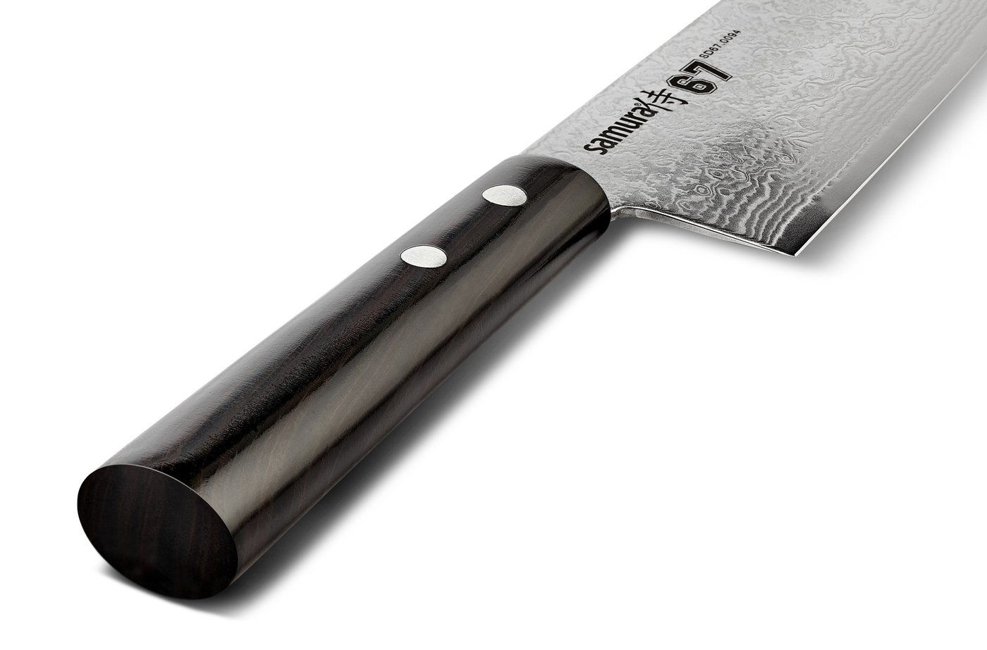 Tento šéfkuchařský nůž má těžkou rukojeť, tlustou, širokou a dlouhou čepel se středovou špičkou. Snadno s ním nasekáte zelí, nakrájíte zeleninu a bylinky, a stejně tak snadno s ním můžete nakrájet maso, ryby a drůbež. Tento šéfkuchařský nůž je nezbytnou součástí výbavy každého kuchaře. Produktová řada Samura Damascus 67 je vrcholem japonského minimalismu. Je to nejkrásnější ze všech sérií, nože jsou tenké a disponují ostrou čepelí a ergonomickou oválnou rukojetí.
