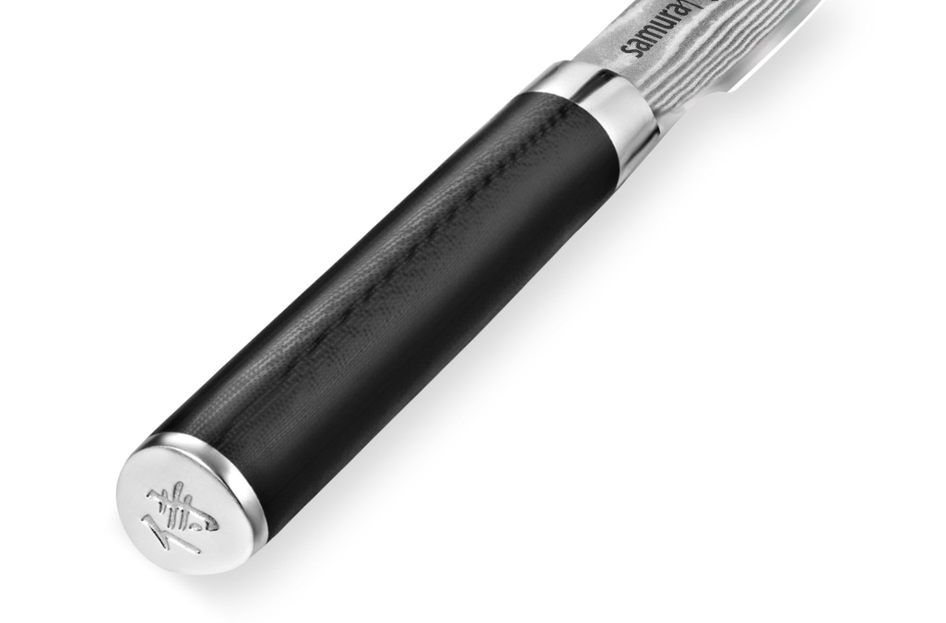 Nože značky Samura jsou vyrobeny z nejlepší japonské a švédské oceli, kalené na 58 - 61 HRC. Čepele mají japonský tvar a jemné zúžení ze špičky, díky čemuž disponují fantastickým řezným výkonem. Nože Samura jsou naostřeny v úhlu 17 stupňů. To je více než u japonských nožů, ale méně než u evropských nožů. Pro rukojeť používáme nejlepší moderní materiály: Micarta, G10, stabilizované dřevo, plast s jemným povrchem, Kraton a kompozity. Vice o historii zn. Samura.
