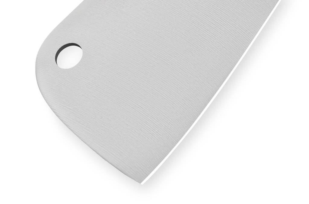 Profesionální kuchařský sekáček má optimální hmotnost pro práci s pevnými potravinami. Úhel ostření - 40 ° umožňuje, aby ostří zůstalo nabroušené po dlouhou dobu. Sekáček lze zavěsit na háček skrz otvor vytvořený v čepeli. Speciální ergonomická geometrie sekáčku a optimální vyvážení čepele a rukojeti velmi usnadňují práci. Sekáček je vyroben z praktické japonské nerezové impregnované molybden-vanadiem oceli AUS 8.