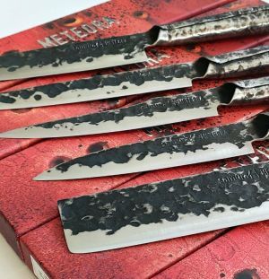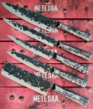 Nože z produktové řady Meteora jsou silné a okouzlující jako meteorit, který prolétá zemskou atmosférou. Tento výtvor zachovává krásu studené tvrdé oceli kováním čepele a rukojeti z jednoho kusu oceli, která je kovaná k dokonalosti. Výsledkem je dutá rukojeť poskytující maximální aerodynamickou přesnost řezání.