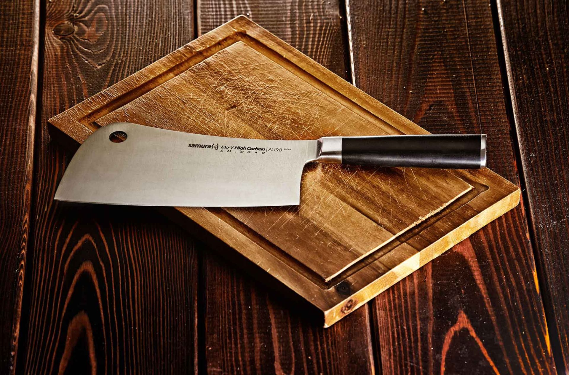 Profesionální kuchyňský sekáček má optimální hmotnost pro práci s pevnými potravinami. Úhel ostření - 40 ° umožňuje, aby ostří zůstalo nabroušené po dlouhou dobu. Sekáček lze zavěsit na háček skrz otvor vytvořený v čepeli. Speciální ergonomická geometrie sekáčku a optimální vyvážení čepele a rukojeti velmi usnadňují práci. Sekáček je vyroben z praktické japonské nerezové impregnované molybden-vanadiem oceli AUS 8. Jeho ergonomická rukojeť G-10 se neotvírá, nemění barvu a perfektně sedne do ruky.