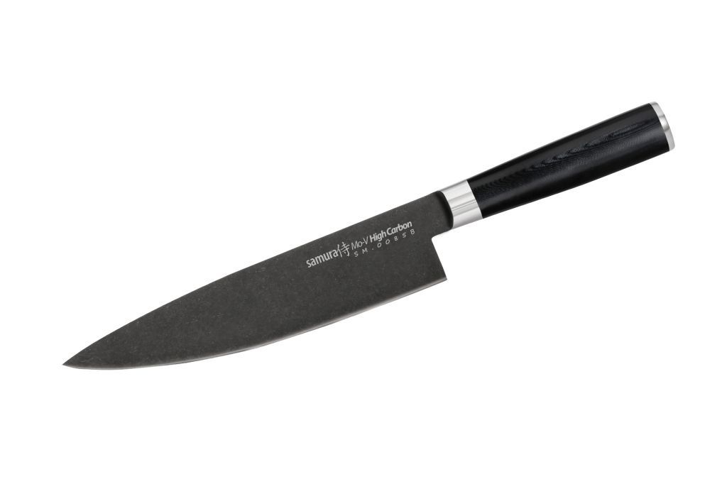 Velký kuchyňský nůž - Šéfkuchařský evropský nůž - je nezbytným a klíčovým prvkem v každé kuchyni. Tento multifunkční nůž s dlouhou a širokou čepelí a černou ochrannou vrstvou zajišťuje optimální výkon při práci, přičemž jeho geometrie je navržena pro tři typy kuchyňské práce: krájení, sekání a drcení. Čepel profesionálního nože MO-V Stonewash z jednovrstvé oceli proniká rukojetí po celé její délce, tím je zajištěna spolehlivost a pevnost tohoto nože. Přítomnost podpěry zabraňuje pronikání bakterií a jiných mikroorganismů do otvorů a zajišťuje nezbytnou hygienu pracovních nástrojů. Speciální povrchová úprava stonewash propůjčuje čepeli výjimečnou tvrdost a vytváří matný strukturovaný povrch.