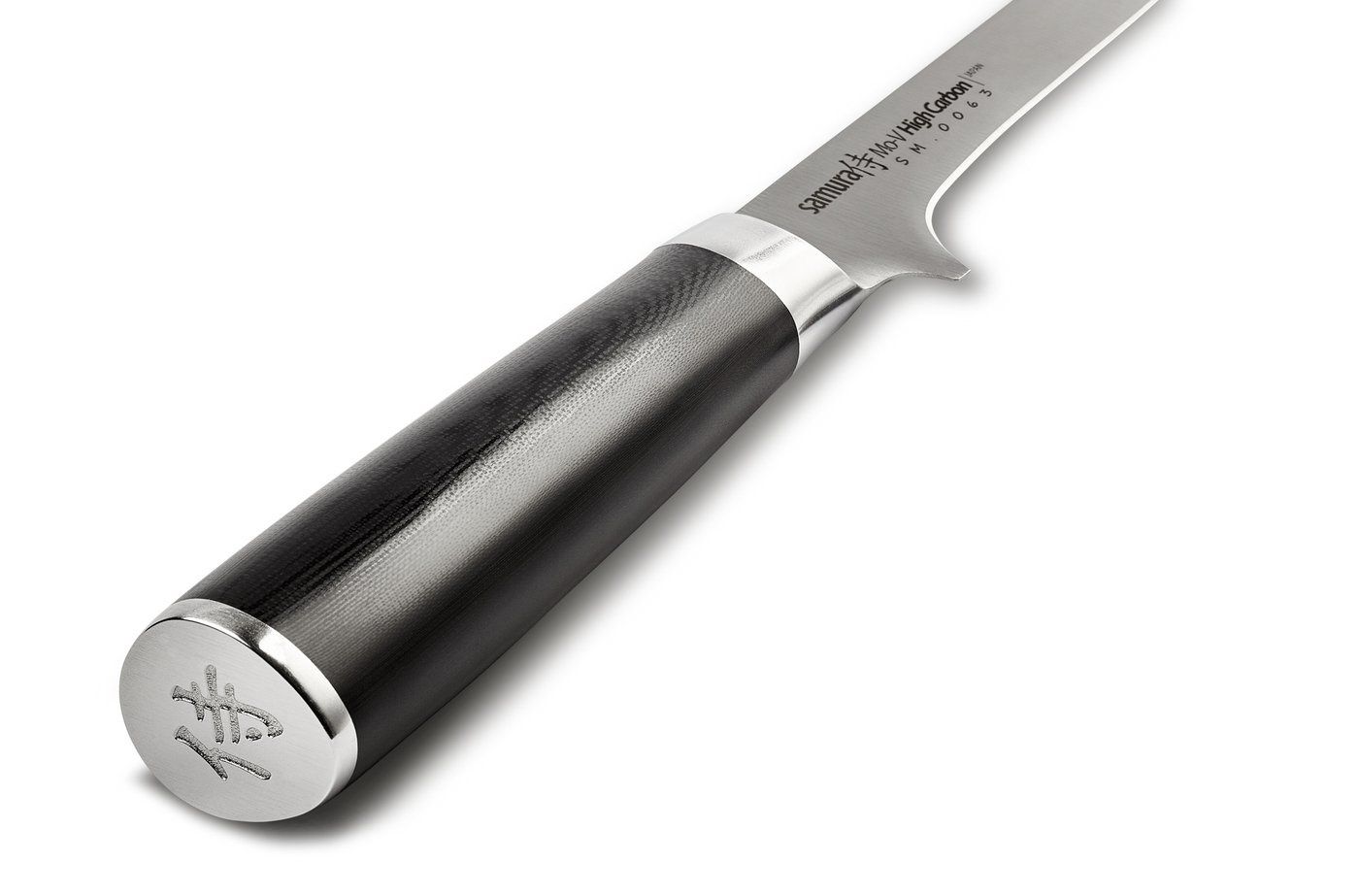 Nože značky Samura jsou vyrobeny z nejlepší japonské a švédské oceli, kalené na 58 - 61 HRC. Čepele mají japonský tvar a jemné zúžení ze špičky, díky čemuž disponují fantastickým řezným výkonem.
