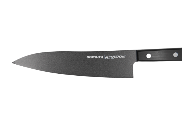 Tento multifunkční nůž s dlouhou a širokou čepelí a černou ochrannou vrstvou zajišťuje optimální výkon při práci, přičemž jeho geometrie je navržena pro tři typy kuchyňské práce: krájení, sekání a drcení. Kromě své funkčnosti a ergonomie je šéfkuchařský nůž Grand z produktové řady Samura SHADOW také velmi stylovým prvkem interiéru kuchyně.