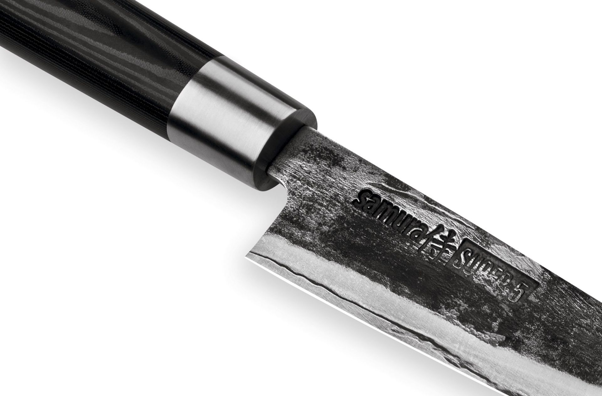 Nože značky Samura jsou vyrobeny z nejlepší japonské a švédské oceli, kalené na 58 - 61 HRC. Čepele mají japonský tvar a jemné zúžení ze špičky, díky čemuž disponují fantastickým řezným výkonem.