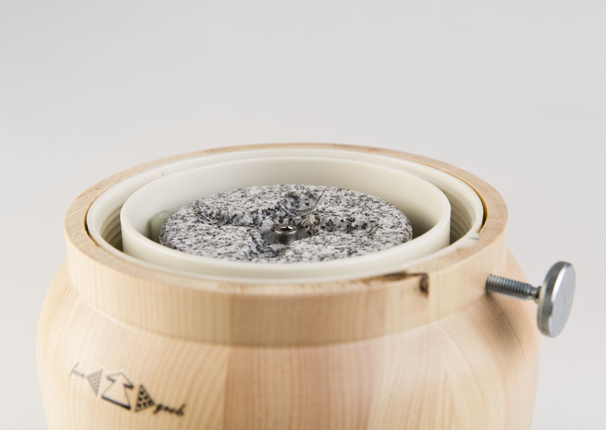 Naše mlýnky jsou vyrobeny výhradně z masivního dřeva. Ostatní používají překližku apod. Lepená dřeva se pro přírodní produkty a mletí obilí nedoporučují.