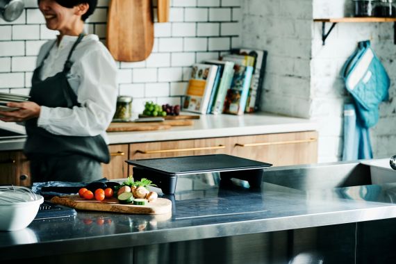 Kombinace tepelného zdroje a grilovací desky je navržena tak, aby po položení chladnějšího pokrmu rychle reagovala a vrátila teplotu zpět na nastavenou hodnotu, čímž předchází nerovnoměrnému propečení a poškození grilovací desky. Zrcadlový povrch ve spodní části pomáhá s rovnoměrným rozložením tepla.