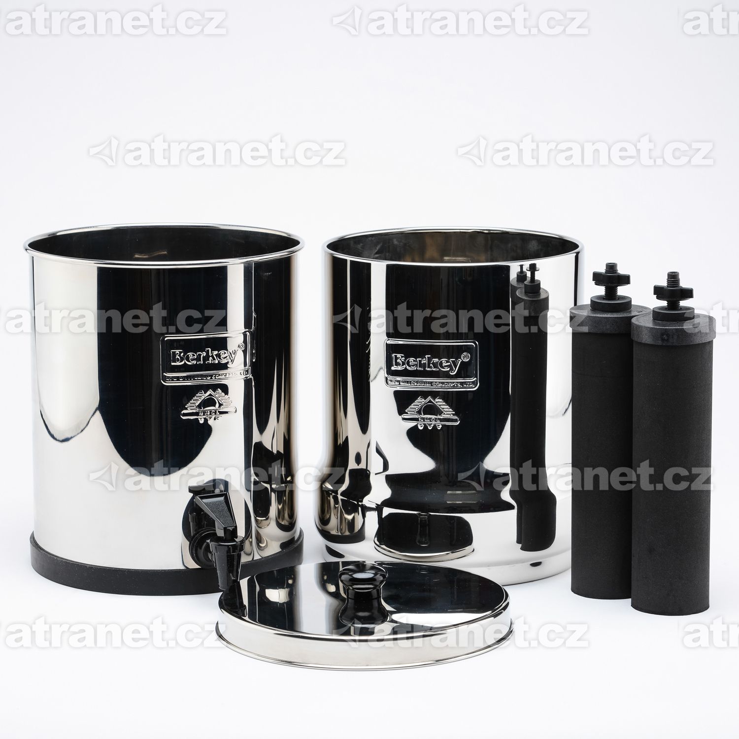 Ocel je odolná proti korozi, vodě, vodní páře a vlhkosti vzduchu a odolává povětrnostním vlivům.) a dodávají se se dvěma až čtyřmi filtračními vložkami Black Berkey®, které využívají nejnovějších technologických postupů pro čištění vody. Objem vody v tomto systému je 8,5 litrů, výška komory je 49 cm a průměr 21,6 cm. Horní komora je při dopravě umístěna uvnitř dolní komory (výška 33 cm).