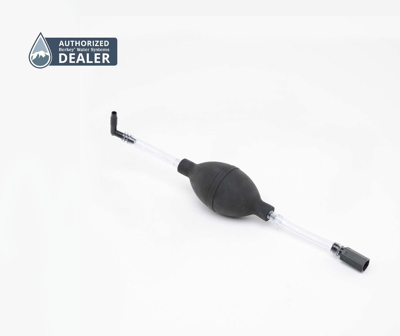 Pomůcka k primování (vytlačení vzduchu z mikropórů) - Black Berkey Primer™ je ruční pumpička, která připraví k provozu filtrační vložky Black Berkey™ bez nutnosti připojení k vodovodu nebo k hadici s tlakovou vodou. Během této přípravy se filtrační vložky Black Berkey™ napustí vodou a systém pak může kdekoli upravovat vodu, aby byla vhodná ke konzumaci.