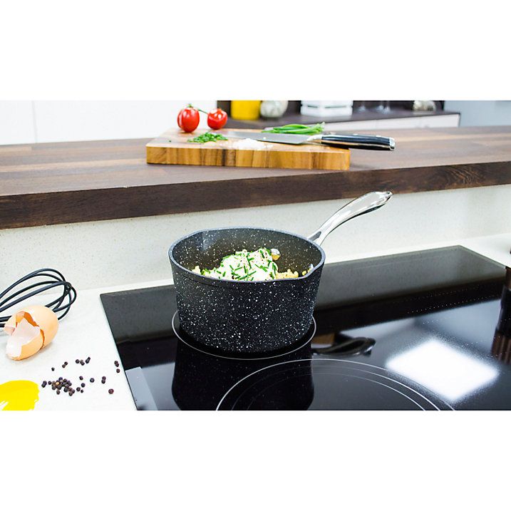 - tvrzené hliníkové tělo s pevnou základnou z nerezové oceli pro rychlé a rovnoměrné rozložení tepla