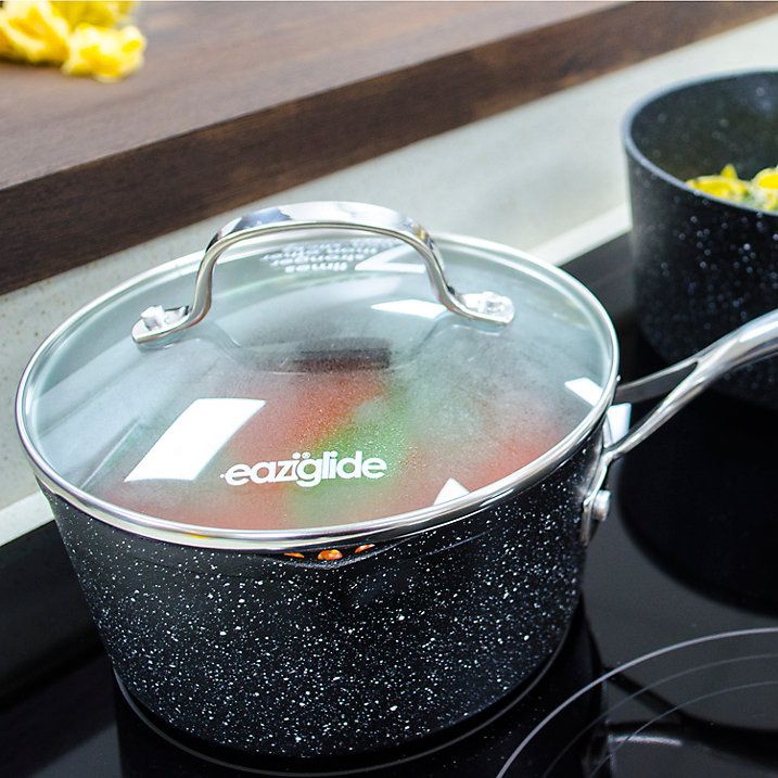 - Tuhle pánev jsem si absolutně zamilovala. Je lehká, ale přitom silná. Nepřilnavá, jídlo po pánvi lehce klouže, a to i s použitím minima olivového oleje. “Eaziglide”, přesně tak jak název napovídá. Přes silné skleněné víko s kovovým okrajem mohu snadno vidět připravované jídlo. Nemusím ji odmáčet ani mýt v myčce. Stačí ji lehce opláchnout ve dřezu, a voilá je perfektně čistá. Budu se muset odměnit více eaziglide nádobím!