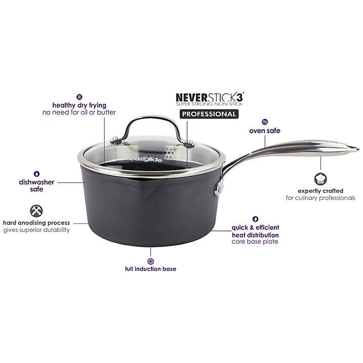 Kolekce nádobí značky Eaziglide Neverstick3 Professional zahrnuje nejlepší řadu produktů. Je vyrobena z anodizovaného leteckého hliníku pro intenzivní odolnost. Nejnovější a vylepšený nepřilnavý povrch nádobí vydrží mnohem déle než ostatní povrchy. Je ideální pro kuchařské profesionály. Toto špičkové nádobí je ideální pro všechny typy vařičů, včetně indukce, a můžete jej použít také při pečení v troubě do 260° C a mýt v myčce nádobí. Vaření se s tímto nádobím stává zdravější, protože můžete vařit bez oleje nebo ostatních tuků.