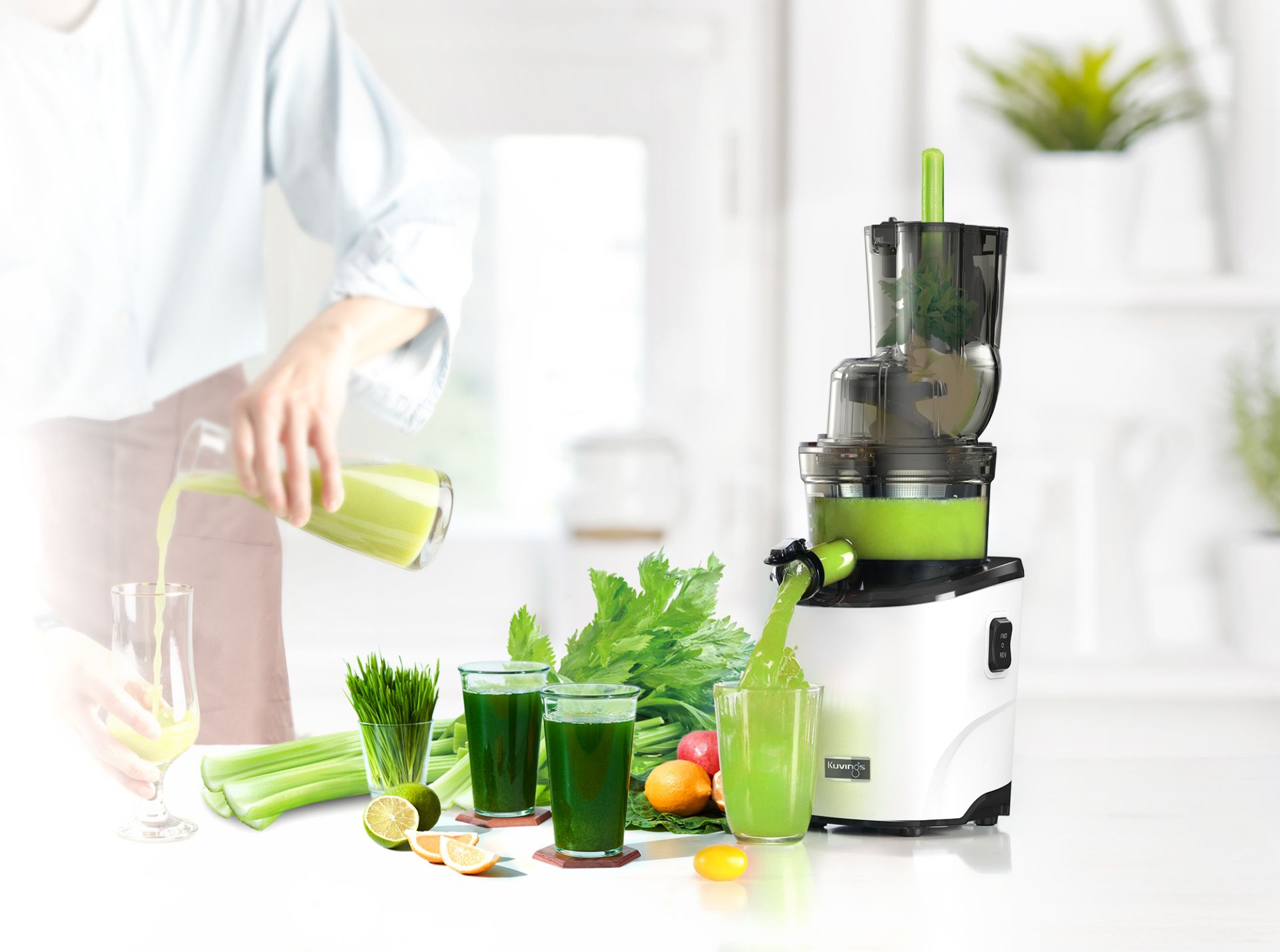 Až o 15 % jemnější než u předešlých modelů! Odšťavňovače Kuvings umožňují vyrábět čisté šťávy ze zeleniny a ovoce a zachovají chuť a živiny bez jakýchkoliv přísad.