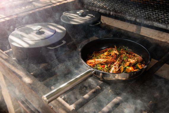 Keramika v kuchyni - špičková pánev s nerezovou ocelí a přírodní keramikou.