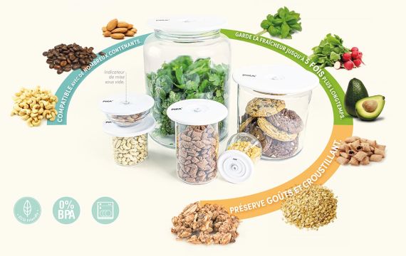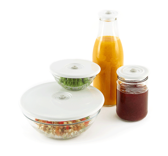 Potraviny balené ve vakuu se oxidují velmi pomalu, což omezuje růst bakterií a prodlužuje životnost surovin. Startovací sada obsahuje dvě univerzální víčka, která jsou kompatibilní s různými typy nádob, jako jsou misky, sklenice a lahve s širokým hrdlem. Vakuová zátka je ideální pro všechny druhy vinných a šampaňských lahví a zajišťuje dokonalé utěsnění, díky čemuž se v lednici nešíří nepříjemné pachy.