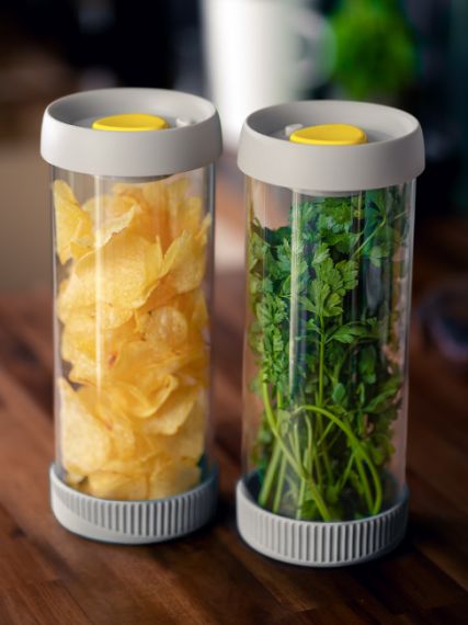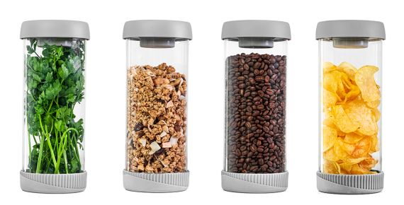 Vakuové nádoby jsou vyrobené z vysoce kvalitního skla, což zaručuje bezpečné skladování potravin a zároveň dodává estetický vzhled.