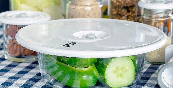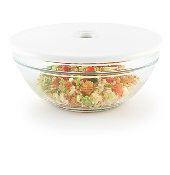 S touto univerzální vakuovou poklicí o průměru 21 cm dokážete uchovat potraviny až pětkrát déle, přičemž si zachovají svou chuť a všechny živiny. Je kompatibilní s vakuovou pumpou zahrnutou ve startovací sadě.