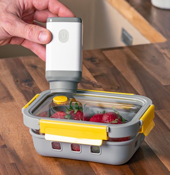 Elektrická vakuová pumpa PIKA okamžitě vytváří v nádobách vzduchový podtlak, což efektivně eliminuje kyslík odpovědný za znehodnocení potravin. Díky tomuto vakuu zůstávají suroviny čerstvé, jejich textura nedotčená a zachovány jsou i všechny nutriční hodnoty. Čerstvé potraviny tak můžete užívat až třikrát déle.