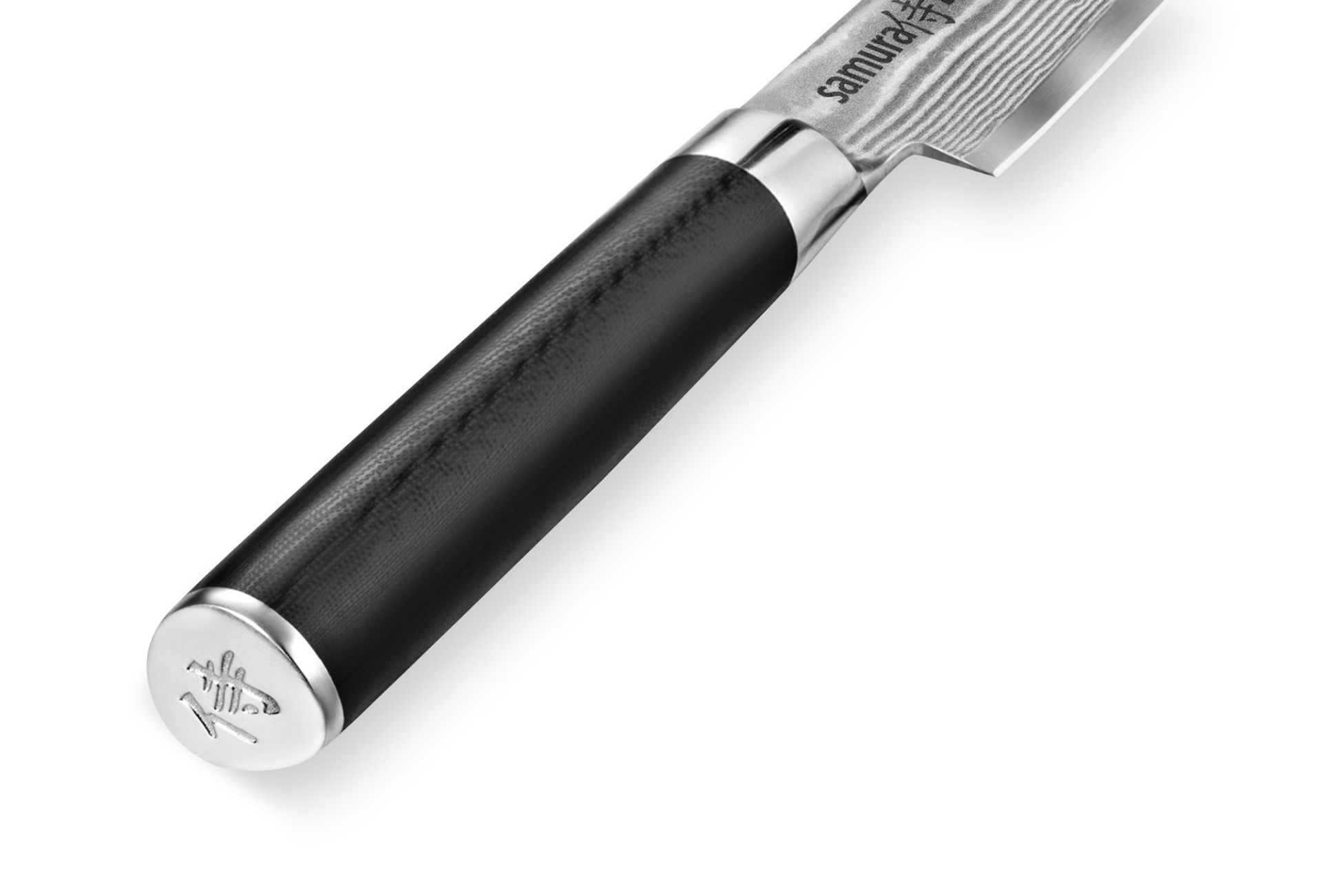 Univerzální nůž Samura z produktové řady Damascus je jedním z nejžádanějších a nejvíce multifunkčních kuchyňských nožů pro krájení a loupání různých potravin. Tenká texturovaná čepel vyrobená z damaškové oceli vyniká mnoha skvělými schopnostmi a vlastnostmi tohoto jedinečného materiálu. Rukojeť je vyrobená z laminátu G-10, který nabízí ještě vyšší bezpečností standard než materiál mikarta. Univerzální nůž Damascus je velice populární. Je velmi lehký, ale zároveň tvrdý a odolný. Poskytuje pohodlné a příjemné krájení, s kvalitou a spolehlivostí nožů Samura osvědčené v každé kuchyni.