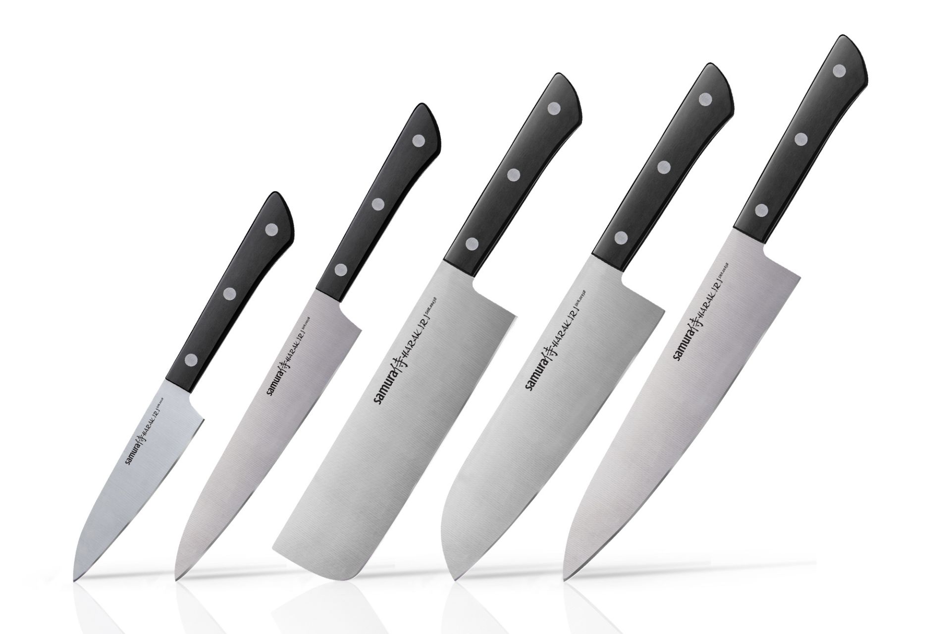 Sada pěti ocelových kuchyňských nožů Samura Harakiri zahrnuje: středně velký nůž na ovoce a zeleninu (SHR-0011B) s krátkou čepelí (99 mm), univerzální nůž (SHR-0023B) se středně dlouhou čepelí (150 мм), nůž Nakiri (SHR-0043B) se širokou střední čepelí (170 мм), šéfkuchařský nůž (SHR-0085B) se širokou a dlouhou čepelí (208 mm) a nůž Santoku (SHR-0095B) s tradiční čepelí japonského tvar (175 mm).