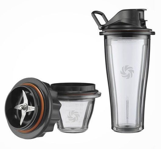(Pozn.: Vzhledem k tomu, že u malých nádob nelze použít pěchovadlo, je třeba si práci s malými nádobami "osahat" a volit vhodná množství a složení surovin, aby se minimalizovalo zachytávání surovin na stěnách nádoby, respektive se usnadnilo jejich mixování díky pohybu celého množství surovin v nádobce. Pomohou recepty a instruktážní videa Vitamix. Pro suroviny s vysokou obtížností zpracovatelnosti je v ideálním případě vhodné použít klasickou velkou nádobu, která nejlépe optimalizuje pohyb mixované hmoty, pracuje s maximálním výkonem motoru a lze v ní použít pěchovadlo.)